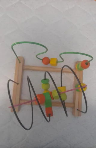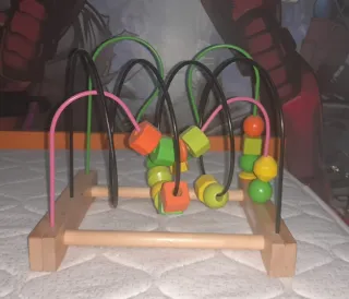 Un divertente gioco in legno, ideale per lo sviluppo dei più piccoli. - Perline colorate di varie forme. - Struttura in legno naturale. - Fili metallici resistenti.