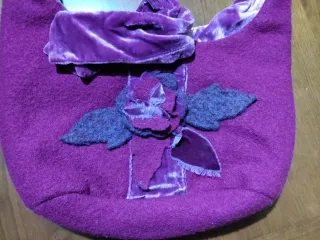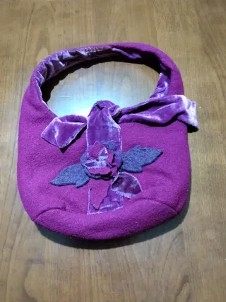Borsa a mano in morbida stoffa, perfetta per aggiungere un tocco di colore. - Decorazione floreale applicata sul davanti. - Fiocco in velluto sul manico. - Fodera interna in velluto.