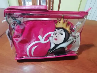Borsa - pochette trasparente con dettagli rosa e l'iconica Regina Cattiva di Biancaneve. - Design con stampa della Regina Cattiva. - Materiale trasparente con finiture rosa. - Chiusura a zip.