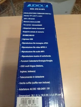 Cornice digitale Audiola, modello DFB 99 MP3. Perfetta per visualizzare le tue foto. - 3 cornici intercambiabili incluse. - Telecomando incluso. - Porta USB.