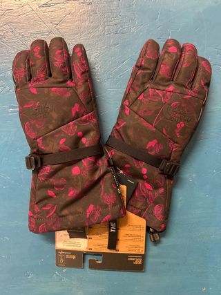 Guanti da sci The North Face con una fantasia floreale vivace. Perfetti per le giornate sulla neve. taglia L - Fantasia floreale su base scura. - Logo The North Face impresso. - Cinturino regolabile al polso.