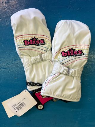 Guanti da sci Bliss by Level, colore bianco, taglia XXL. Perfetti per le giornate sulla neve. - Design con arcobaleno colorato. - Logo Bliss by Level ricamato. - Polsino elasticizzato con chiusura a velcro. - Materiale resistente e caldo.