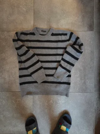 Maglione a righe grigio e nero, indossato poche volte. Condizioni buone - Design a girocollo. - Tessuto morbido al tatto.
