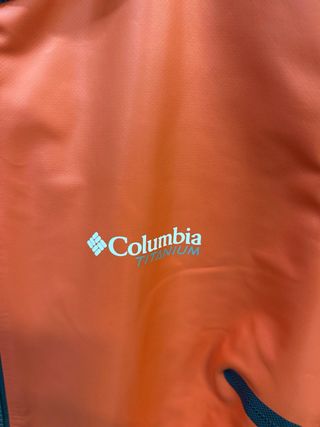 Giacca Columbia Titanium di colore arancione con dettagli grigi. Taglia M - Cappuccio con cordino. - Zip frontale. - Tasche laterali con zip. - Logo Columbia sul petto.