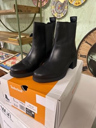 Eleganti scarponcini Timberland. - Modello Chelsea boots. - Tomaia in pelle. - Dettaglio elastico laterale. - Tacco largo.