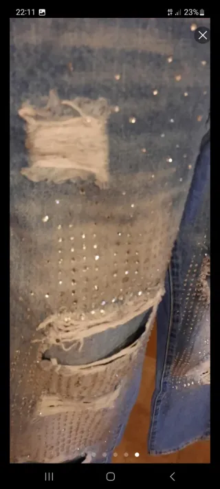 3 paia di Jeans alla moda con dettagli unici, tutti nuovi con cartellino, tg L - Design strappato - Applicazioni di strass scintillanti - Vestibilità comoda elasticizzato - perle -disegni