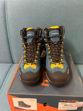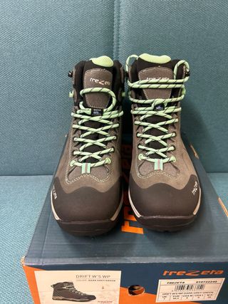 Scarponi da trekking Trezeta in ottime condizioni. Perfetti per le tue avventure all'aria aperta. - Colore grigio con dettagli verdi. - Suola Vibram per un'ottima aderenza.