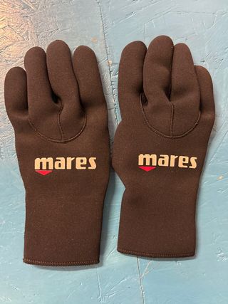 Guanti da subacquea Mares in neoprene. - Colore nero. - Logo Mares rosso e bianco sul dorso. - Cuciture rinforzate.