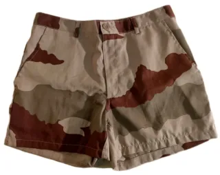 Pantaloncini militari mimetici desert Esercito Francese NUOVI Taglia 84 (taglia militare francese) Equivale a una M - Mimetismo desert - 2 tasche frontali - Chiusura con bottone e cerniera Misure: Vita lineare: 40 cm Lunghezza: 37 cm Coscia lineare: 26 cm Disponibile altro abbigliamento tecnico e militare nelle mie inserzioni Ideale per caccia, pesca, reenactor, softair, airsoft, militare, esercito, army, montagna, mare, lago, sole, ecc...