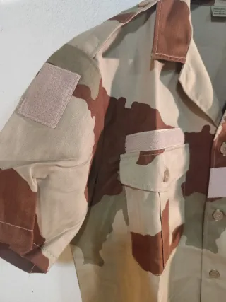 Camicia mimetica militare estiva Esercito Francese NUOVA MAI USATA Taglia L 41-42 - Chiusura a bottoni - 2 Tasche sul petto - Patch sul petto - Patch sulle maniche Disponibile diverso abbigliamento tecnico e militare nelle mie inserzioni Ideali per caccia, pesca, softair, airsoft, paintball, trekking, tempo libero, sport, paracadutismo, moto, montagna, neve, ecc...