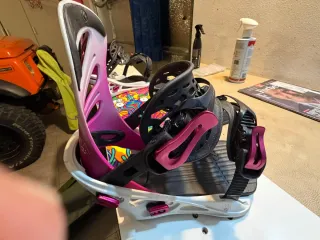 Attacchi da snowboard Flux GU per donna. Taglia S (35,5-37,5) - Colore bianco, fucsia e nero. - Design moderno e funzionale. - Usati per pochissime uscite in ottime condizioni
