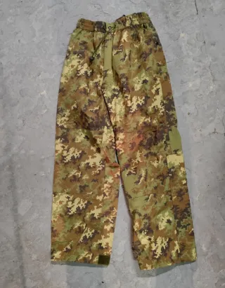 Pantaloni mimetici impermeabili Esercito Italiano, in Gore-Tex , taglia 48 - Cerniera al polpaccio - Regolazione alla caviglia - Chiusura con bottone a pressione e cerniera - Corda di regolazione in vita - Bretelle elastiche interne removibili NUOVI MAI USATI Disponibile diverso abbigliamento militare nuovo e usato tra le mie inserzioni, dai un'occhiata 😃 Ideale per caccia, pesca, reenactor, softair, airsoft, militare, esercito, army, montagna, neve, trekking, moto ecc...