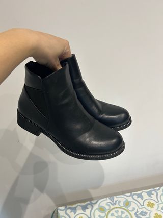Stivaletti neri da donna modello ankle boots, taglia 40. Design semplice ed elegante con piccole borchie decorative lungo la suola che danno un tocco particolare. Comodi da indossare tutti i giorni, perfetti con jeans, pantaloni o gonne. Chiusura con zip laterale per indossarli facilmente. Condizioni buone: usati poco e ben tenuti. Venduti come da foto. #stivaletti #ankleboots #scarpe40 #stivaletti40 #scarpenere #stivalettidonna #outfitdonna #modadonna #vinteditalia
