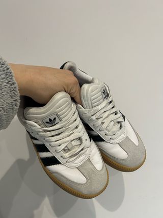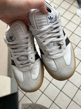 Scarpe Adidas Samba con platform, taglia 39 e 1/3 Modello molto richiesto e comodo con suola rialzata. Condizioni molto buone, indossate ma in ottimo stato Perfette per outfit casual e streetwear