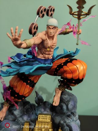 Dinamica e bellissima Statua di Eneru dell'anime manga One Piece; un personaggio molto potente, grazie al suo Frutto del Diavolo di categoria Rogia Rombo Rombo, che gli permette di tramutare il suo corpo in elettricità. Colori vivaci, dettagli unici in ogni suo particolare. Possibilità di Togliere il tridente, fasci energetici a calamitati a piacere sul tridente. Complessivamente una Figure spettacolare in ogni sua parte! No Marca. Materiale: PVC resinato di alta qualità! Dimensioni: cm23x25x28h Presenta sua Brown Box con protezione polistirolo interna! Garantisco imballo accurato e spedizione in H24!