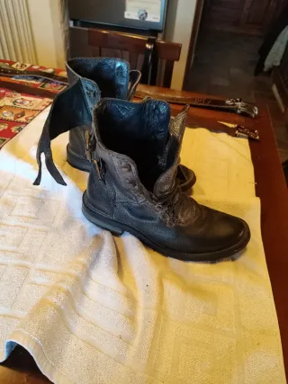 Anfibi in pelle marrone, taglia 40. Un classico intramontabile per un look deciso. - Tomaia in vera pelle. - Allacciatura stringata. - Suola robusta.
