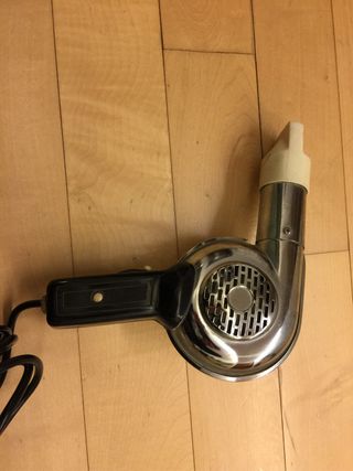 Asciugacapelli TERMOZETA vintage funzionante 400W. Un pezzo di design retrò ottimo per arredo negozio o collezionisti. - Corpo in metallo cromato lucido. - Impugnatura nera. - Ugello direzionabile.