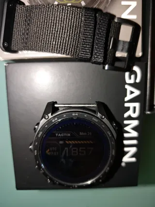 Orologio Garmin Tactix 8 Solar con cassa da 51mm. - Lunetta in titanio. - Cinturino in tessuto nero. In dotazione cinturino di plastica e tutto quello che ha di originale nella scatola.
