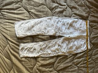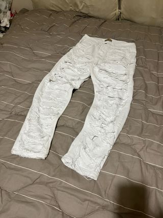 Jeans bianchi con un design unico e audace. - Dettagli strappati su tutta la lunghezza. - Orlo sfrangiato sul fondo.