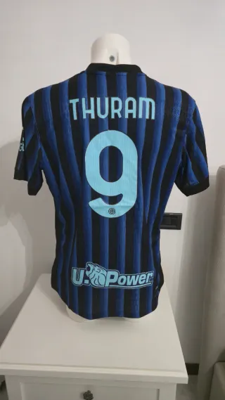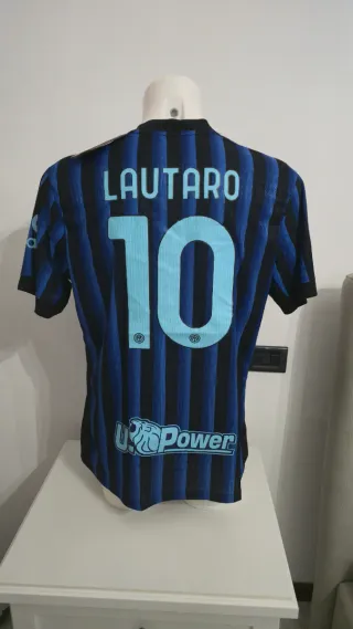 Maglia da calcio dell'Inter, stagione 2025/2026, con il nome e il numero di Lautaro Martinez o Marcus Thuram. - Colore blu e nero a strisce verticali. - Numero 10/9 stampato sul retro. - Nome LAUTARO/THURAM stampato sul retro. - Logo U Power sul fondo anteriore. - Patch Serie A TIM. - Patch Gate.io Taglie disponibile XXL e XL. Le maglie essendo la versione da gara versano leggermente attillate.