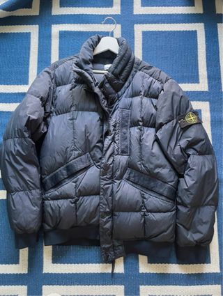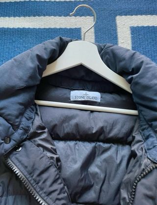 Giubbotto imbottito Stone Island. - Patch Stone Island sulla manica sinistra. - Chiusura frontale con zip e bottoni. - Tasche frontali con patta. - Collo alto imbottito.