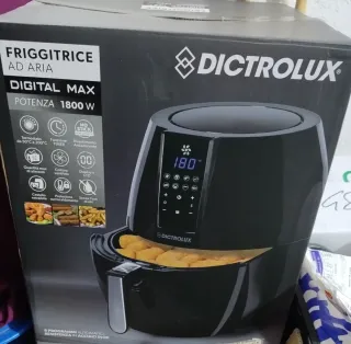 Friggitrice ad aria Dictrolux Digital Max con potenza 1800W. - Termostato regolabile da 50°C a 200°C. - Funzione Timer. - Rivestimento antiaderente. - Quantità max di alimenti: 2.5 kg. - Cottura ventilata. - Display a LCD. - Cestello estraibile. - Protezione surriscaldamento. - Senza l'uso di olii. - 8 programmi automatici. - Resistenza in acciaio inox.