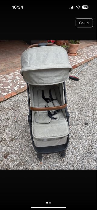 Vendo passeggino Nuna TRVL in colore beige. - Telaio leggero e compatto. - Manico imbottito per una presa comoda. - Cappottina estensibile per proteggere dal sole. - Cestello portaoggetti spazioso.