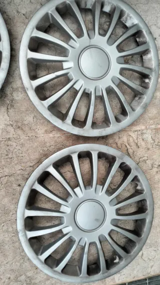 Set di 4 copricerchi in plastica da 15 pollici. - Design a 10 razze. - Colore grigio metallizzato. - Adatti per cerchi in lega da 15 pollici.