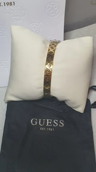 Eleganza essenziale e stile iconico si fondono in questo raffinato bracciale rigido da donna firmato Guess. Realizzato in metallo con finitura oro lucido, presenta una silhouette aperta e minimalista impreziosita dal celebre logo 4G e dai motivi monogram incisi su tutta la superficie. Un accessorio dal design sofisticato e riconoscibile, perfetto per valorizzare ogni look con un tocco glamour e distintivo.
