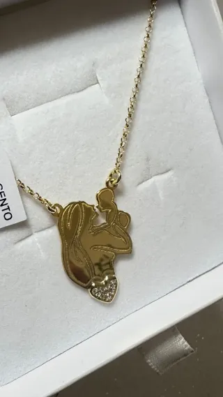 Celebra l’amore più puro con questa elegante collana in Argento 925‰ placcata oro, raffigurante una dolce sagoma di mamma e bambino. Il ciondolo, dal design moderno e minimalista, è impreziosito da un cuore brillante con zirconi, simbolo di affetto e protezione.Perfetta come regalo per una neo-mamma, per la Festa della Mamma o per ricordare un legame speciale, questa collana unisce stile, significato e qualità.