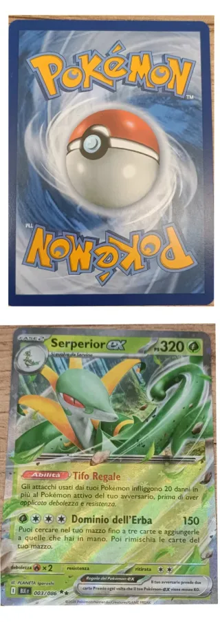 Carta Pokémon Serperior-EX, numero 003/086. - Fase 2 - PS 320 - Abilità: Tifo Regale - Attacco: Dominio dell'Erba - Debolezza x2 - Resistenza - Rara