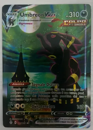 P.s. Non è una carta Proxy Carta Pokémon VMAX di Umbreon. - PS: 310 - Abilità: Segnale Oscuro - Attacco: Dynatenebre (160) - Illustratore: KEIICHIRO ITO - Codice carta: E 215/203 - Regola VMAX inclusa.