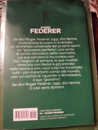 Roger Federer di Riccardo Crivelli, libro in eccellenti condizioni. Roger Federer di Riccardo Crivelli, i Miti dello Sport, 4; edizioni Gazzetta dello Sport. Edizione snella incentrata sulla biografia di RogerFederer, dall'infanzia alla scalata sportiva, arricchita di numeri e statistiche. Anno 2020, pagine pulite niente scritte o strappi. Edizione ottima per appassionati e collezionisti o amatori.