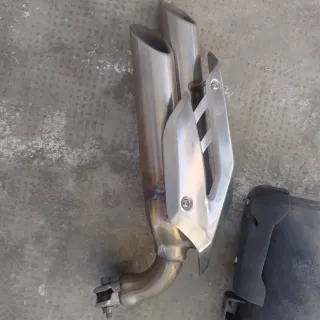Componenti di scarico per Benelli TNT 125. - Terminale di scarico cromato con doppio silenziatore. - Collettori e silenziatore centrale inclusi.