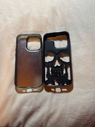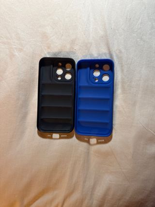 Set di due cover per iPhone 15 Pro, una nera e una blu. Marca The Puffer Face - Cover nera - Cover blu