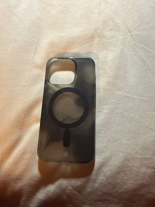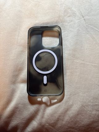 Cover in silicone trasparente con anello magnetico compatibile con MagSafe. - Design fumé. - Protezione per iPhone 15 Pro.