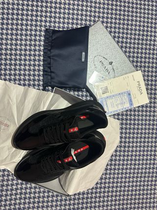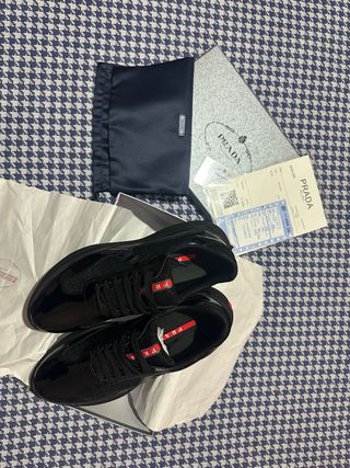 Eleganti scarpe Prada Cup. - Design moderno e sportivo. - Dettagli in vernice lucida. - Logo Prada sulla linguetta.
