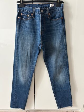 Jeans Levi's da donna in denim blu. - Modello classico. - Vestibilità dritta. - Orlo sfrangiato.