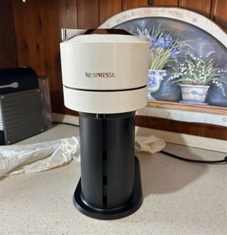 Macchina per caffè Nespresso Vertuo Next, colore bianco e nero. - Design moderno e compatto. - Finitura lucida.