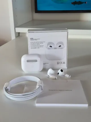 Auricolari wireless Apple AirPods di terza generazione. Inclusi nella confezione cavo di ricarica e manualistica. Vendute Pulite e disinfettate PREZZO NON TRATTABILE