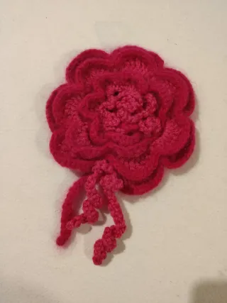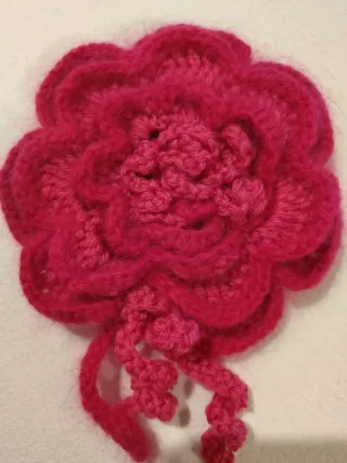 Bellissima spilla realizzata a mano all'uncinetto, a forma di fiore. - Realizzata in lana. - Dettaglio con nastrini pendenti.