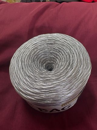 Gomitolo di fettuccia Mondial Eco Bag, colore argento metallizzato. 300 grammi. Colore a scelta, argento o oro - Filato metallico per borse. - Colore: Argento. - Marca: Mondial. - Linea: Eco Bag.