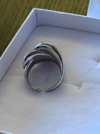 Elegante anello in argento con un design ispirato alle foglie. - Finitura lucida. - Design aperto e regolabile. In acciaio inox