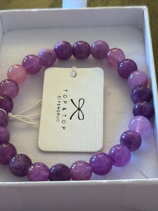 Elegante bracciale elasticizzato con perle viola in vetro. Un accessorio che aggiunge un tocco di colore. - Perle sfaccettate. - Design elastico per una facile vestibilità.
