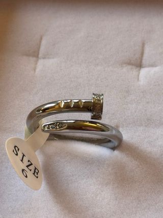Elegante anello effetto unghia, un gioiello dal design moderno e accattivante. Perfetto per aggiungere un tocco di stile unico al tuo look. - Design a forma di unghia - Dettagli scintillanti con zirconi - Misura 6 (diametro 17.3 mm) In acciaio inox