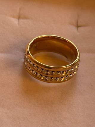 Elegante anello in oro con due fasce di zirconi luminosi. - Design a fascia. - Dettagli scintillanti. Acciaio inox