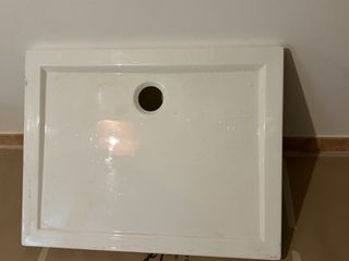 Piatto doccia rettangolare con foro centrale per lo scarico. incluso di piletta Slim da 9 cm comprato e inserito nel bagno, ma le misure non erano adatte al mio. - Dimensioni: 70x90 cm - Materiale: resina effetto marmo