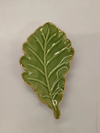 Delicato piattino a forma di foglia, perfetto per aggiungere un tocco di natura alla tua tavola o come piccolo portaoggetti. - Design ispirato a una foglia con dettagli delle venature. - Bordi leggermente rialzati.