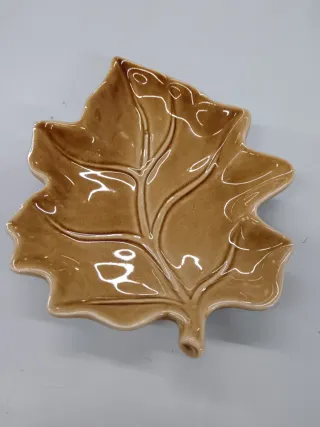 Elegante piattino decorativo a forma di foglia. - Realizzato in porcellana di alta qualità. - Finitura lucida color marrone. - Design ispirato alla natura.