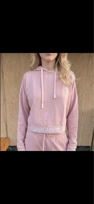 Comoda felpa crop con cappuccio colore rosa - Design con cappuccio e laccetti. - Logo sul petto. - Fascia elastica in vita con logo. Mai usato